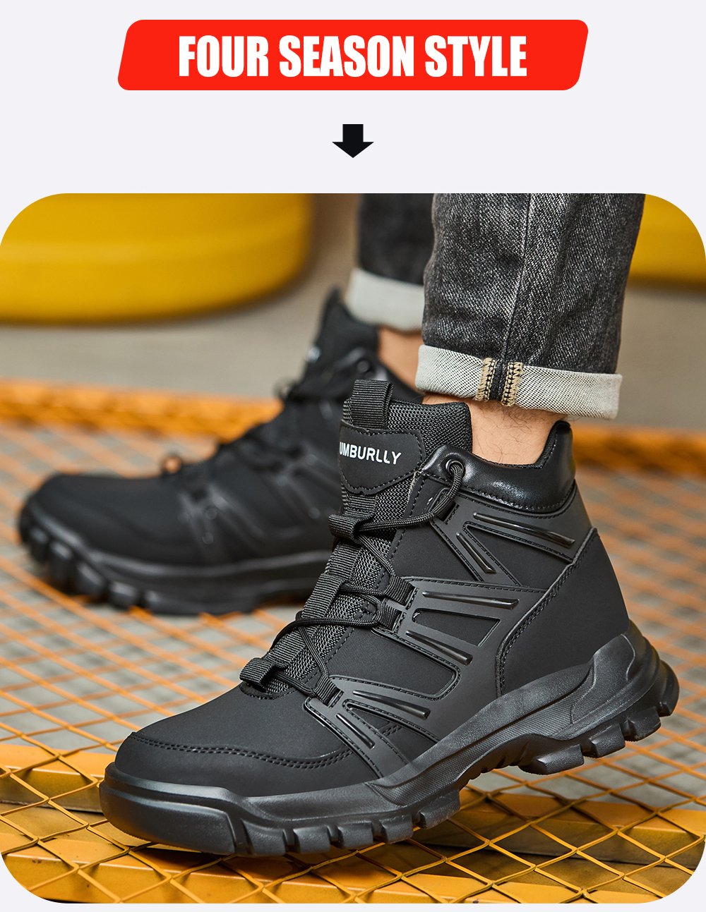 • Talpă de cauciuc antiderapare ce oferă aderență și se adaptează la medii alunecoase